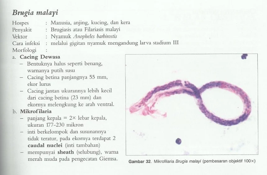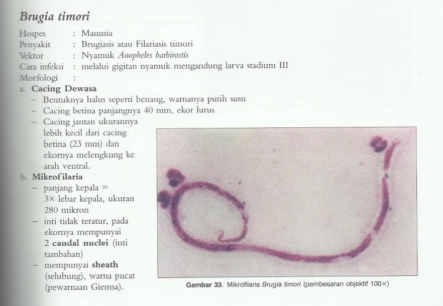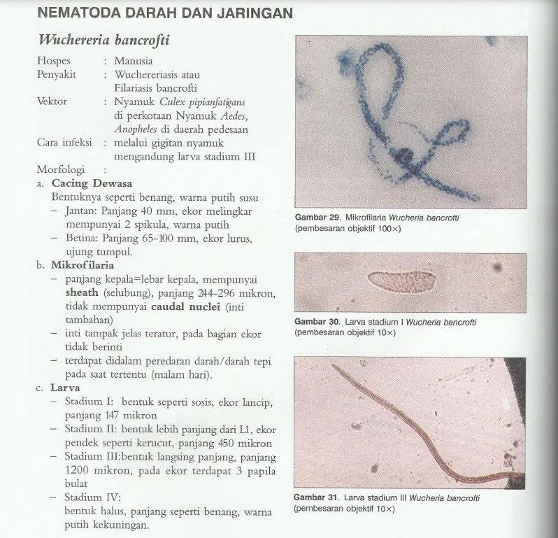 Salah (microfilaria ukuran mirip namun cacing dewasanya yang ukuran W bancrofti lebih besar).