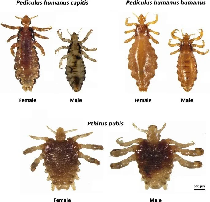 Phthirus pubis memiliki tubuh lebih lebar dibandingkan spesies Pediculus.
