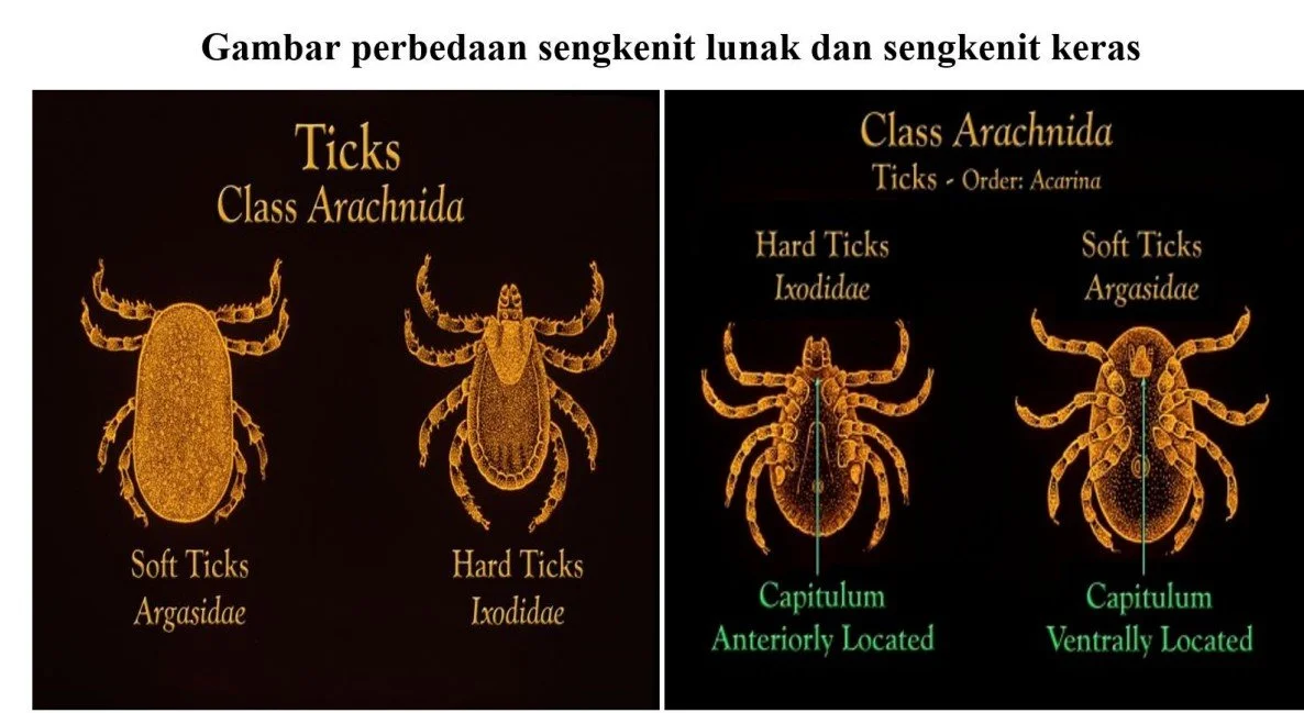 Berikut penjelasan tentang perbedaan antara caplak keras (hard ticks) dan caplak lunak (soft ticks):